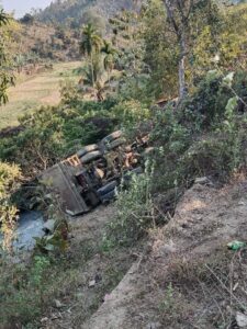 এ সময় ট্রাকটি সড়ক থেকে পাহাড়ের খাদে পড়ে যায় এবং ঘটনাস্থলে ট্রাকচালক মারা যান। একই সময় শান্তি পরিবহনের যাত্রীবাহী বাসটি নিয়ন্ত্রণ হারিয়ে সড়কের পাশে একটি গাছের সঙ্গে আটকে যায়। এতে প্রাণে রক্ষা পান বাসে থাকা ৪০ জন যাত্রী।