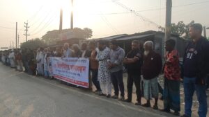 মঙ্গলবার (২৩ ডিসেম্বর) বিকেল ৩টায় কিশোরগঞ্জ সদর উপজেলার ময়মনসিংহ-ভৈরব আঞ্চলিক মহাসড়কের সাদুল্লাহচর থেকে চৌদ্দশত এলাকা পর্যন্ত এই মানববন্ধন অনুষ্ঠিত হয়।
