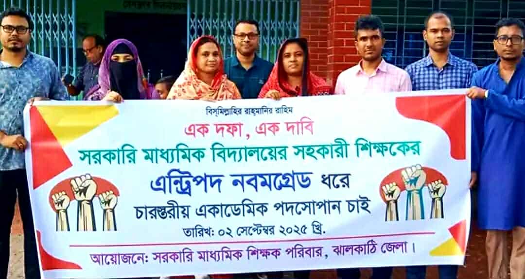 ঝালকাঠিতে সরকারি মাধ্যমিক স্কুলের সহকারি শিক্ষকদের মানববন্ধন