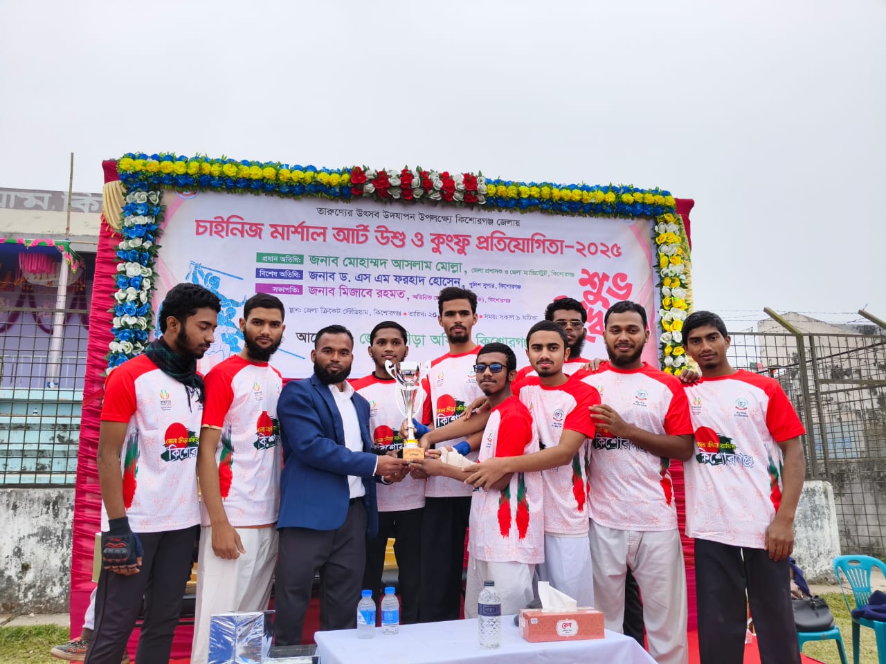 চাইনিজ মার্শাল আর্ট উশু ও কুংফু প্রতিযোগিতায় চ্যাম্পিয়ন আল জামিয়াতুল ইমদাদিয়া। ছবি: আস্থা তারুণ্যের উৎসব উদযাপন উপলক্ষে কিশোরগঞ্জে অনুষ্ঠিত জেলা