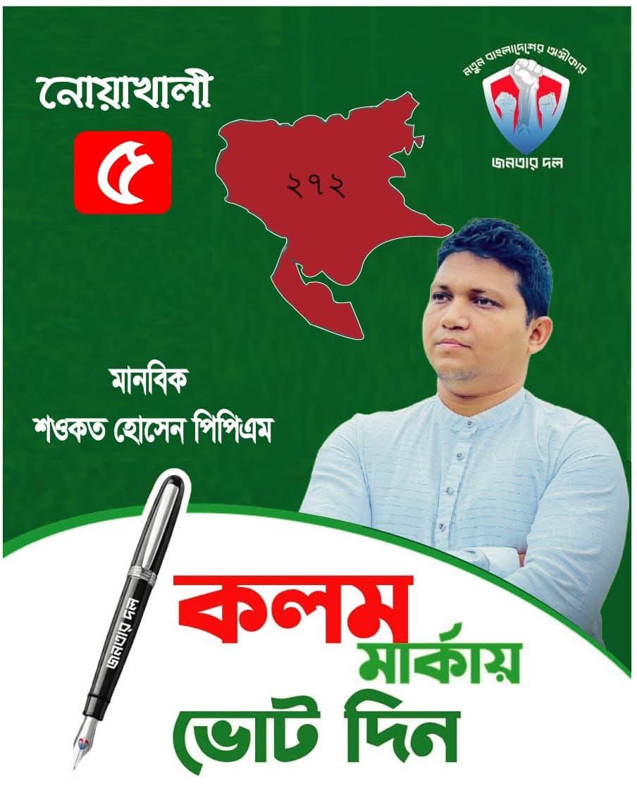 নোয়াখালী-৫ আসনে স্বতন্ত্র প্রার্থী হচ্ছেন ‘মানবিক পুলিশ’ শওকত হোসেন মোফাজ্জল হোসেন ইলিয়াছঃ জাতীয় সংসদের ২৭২ নম্বর আসন, নোয়াখালী-৫ (কোম্পানীগঞ্জ-কবিরহাট) আসন