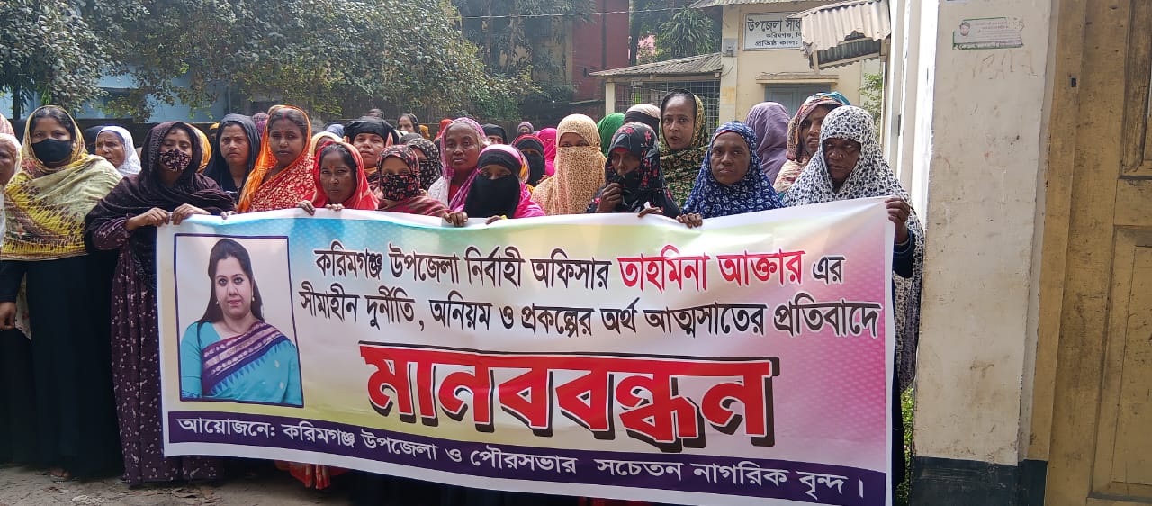 করিমগঞ্জে ইউএনও বিরুদ্ধে দুর্নীতি ও প্রকল্প আত্মসাতের অভিযোগে মানববন্ধন