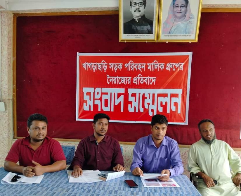 খাগড়াছড়িতে যাত্রীদের হয়রানীর প্রতিবাদে সংবাদ সম্মেলন