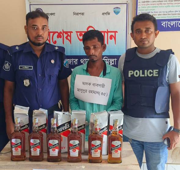 মুরাদনগরে বিদেশি মদসহ মাদক ব্যবসায়ী আটক