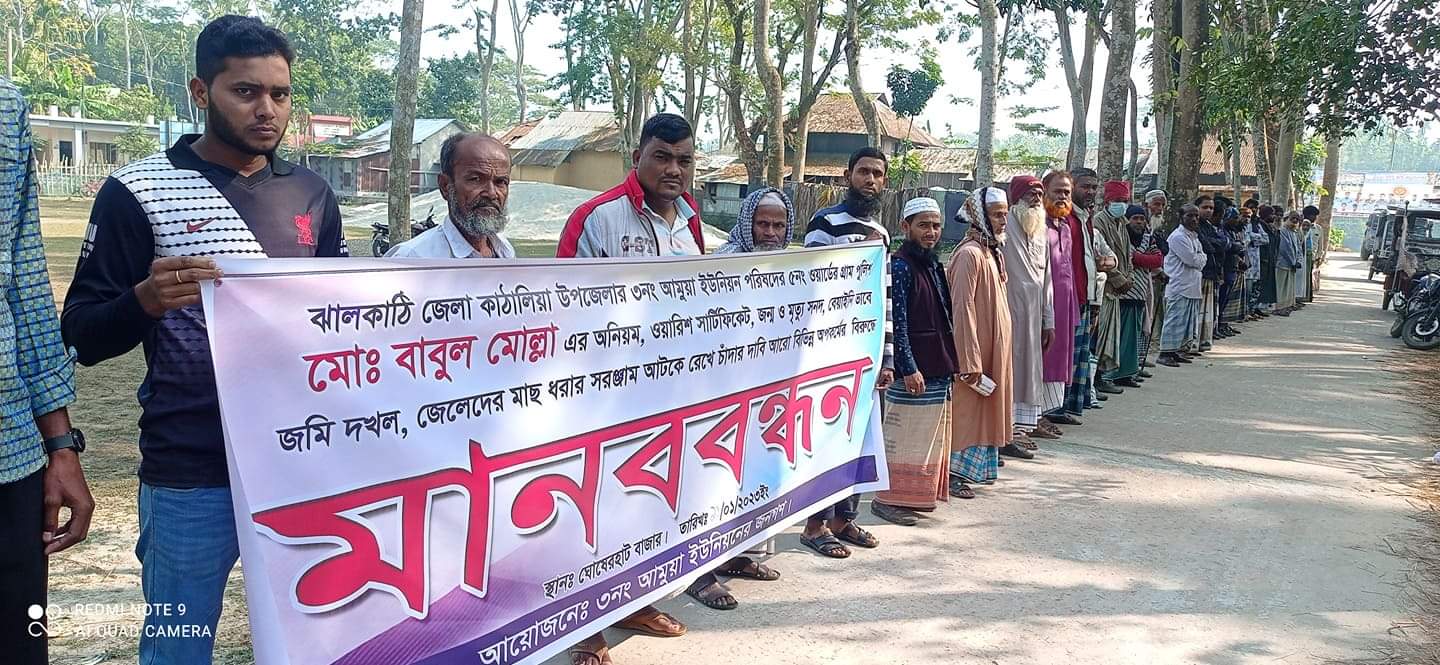 গ্রাম পুলিশের বিভিন্ন অপর্কমের প্রতিবাদে মানববন্ধন ও বিক্ষোভ আমির হোসেন/ঝালকাঠি প্রতিনিধিঃ ঝালকাঠির কাঠালিয়ার আমুয়া ইউনিয়নের ৫ নং ওয়ার্ডের