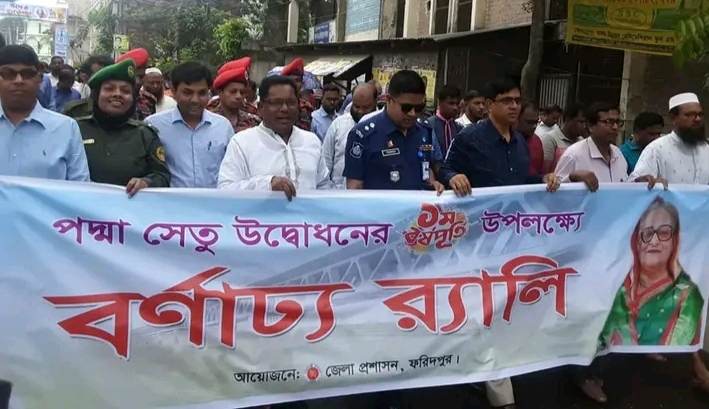 পদ্মা সেতু উদ্বোধনের এক বছর পূর্তিতে ফরিদপুরে বর্ণাঢ্য শোভাযাত্রা