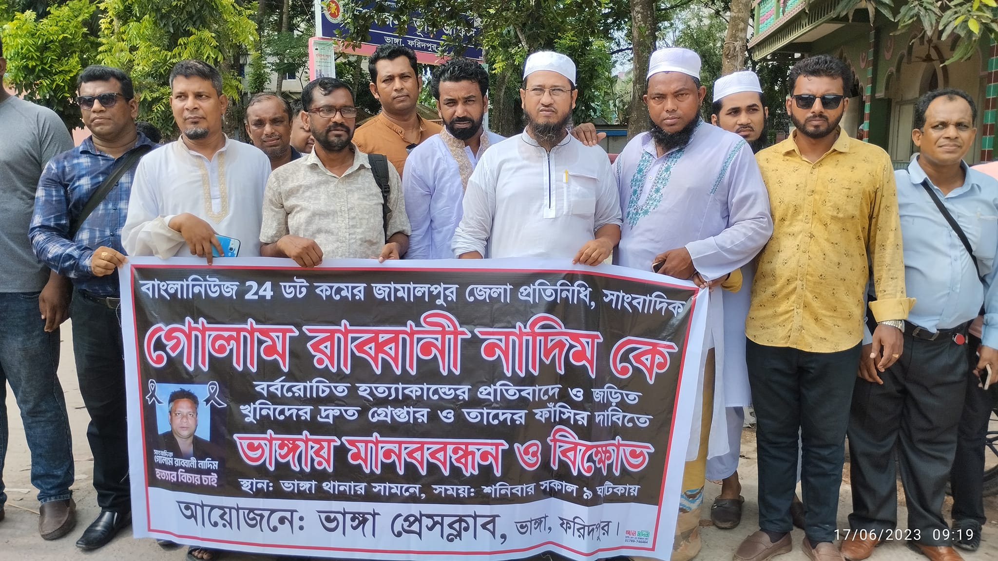 সাংবাদিক নাদিম হত্যার বিচার দাবীতে ভাঙ্গায় প্রতিবাদ সভা