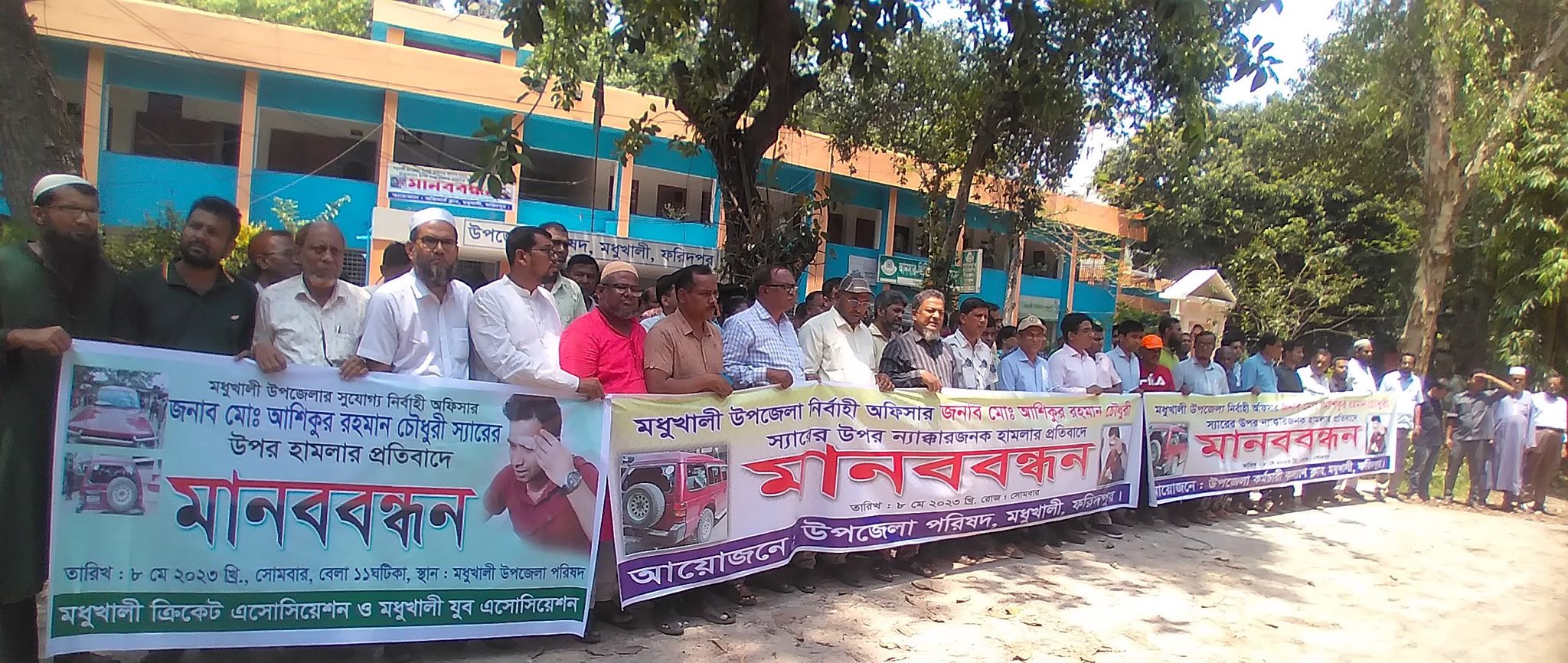 মধুখালী উপজেলা পরিষদ ও কর্মচারী কল্যাণ ক্লাবের মানববন্ধন ফরিদপুর প্রতিনিধিঃ ফরিদপুরের মধুখালী উপজেলা নির্বাহী কর্মকর্তা মোঃ আশিকুর রহমান চৌধুরী