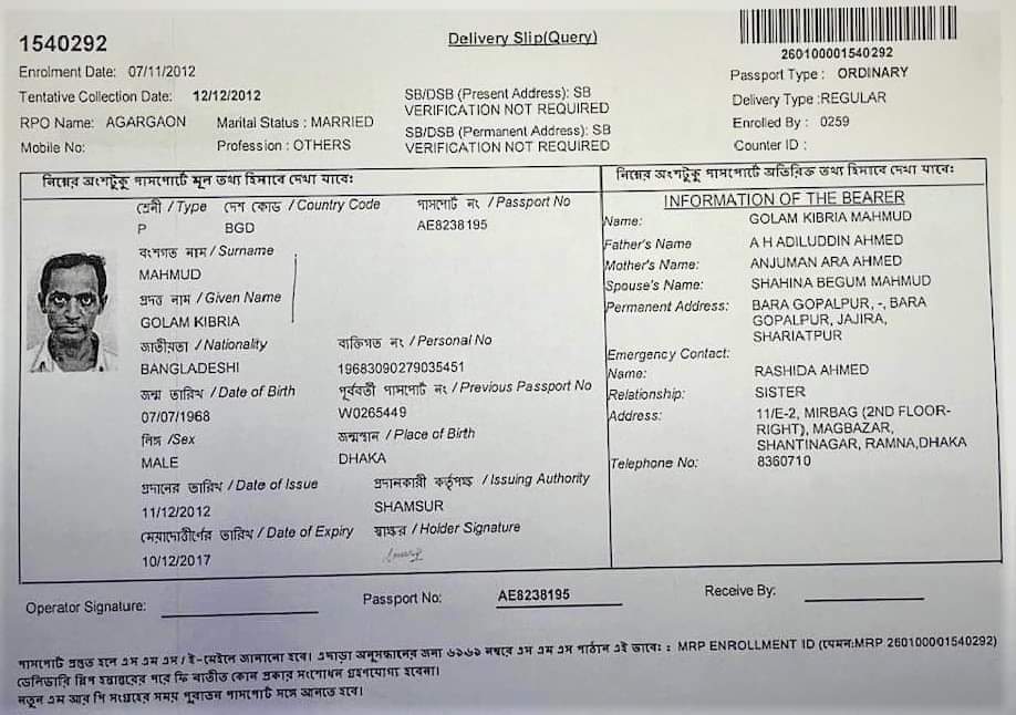 মিলেছে গোলাম কিবরিয়া মাহমুদের পরিজনের