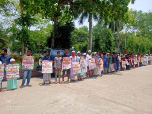 বৃহস্পতিবার (১১ মে) সকাল ১০ টায় স্বল্প মারিয়া রঙ্গারকোনা থেকে একটি বিশাল মিছিল বের হয়ে জেলা শহরের বত্রিশ,গৌরাঙ্গ বাজার, কালিবাড়ী মোড় হয়ে জেলা প্রশাসকের কার্যালয়ের সামনে চিহ্নিত সন্ত্রাসী বহিনীর বিরুদ্ধে দৃষ্টান্তমূলক শাস্তির দাবিতে মানববন্ধন কর্মসূচি পালন করেন।